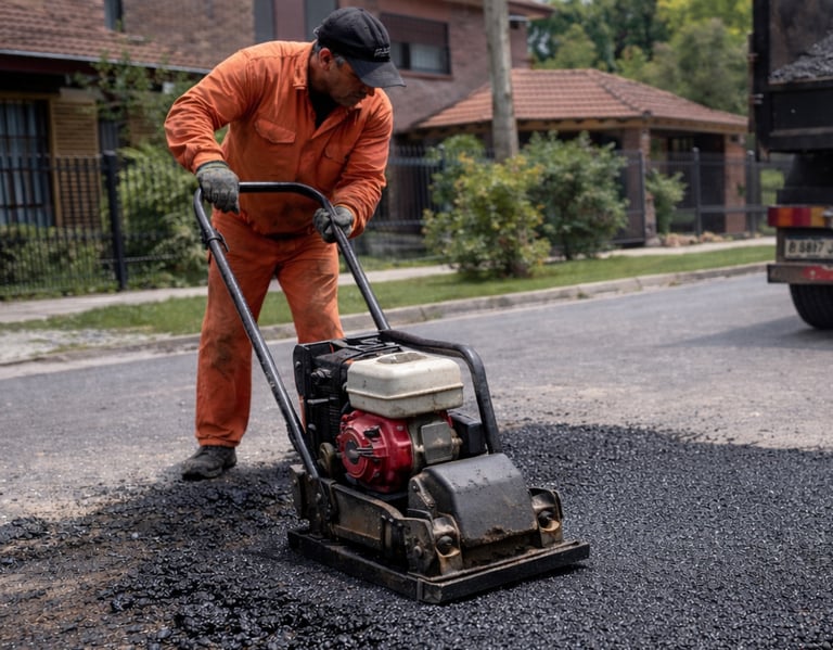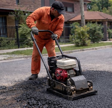 Biomezcla con biodiesel, colocada en frío. Acopiable 12 meses. Rendimiento: 1 Tn cubre 10 m² a 5 cm. Sin emulsión asfáltica en la base, reduce costos. Durabilidad +10 años. Solución sostenible para bacheo profesional en calles, caminos y rutas.